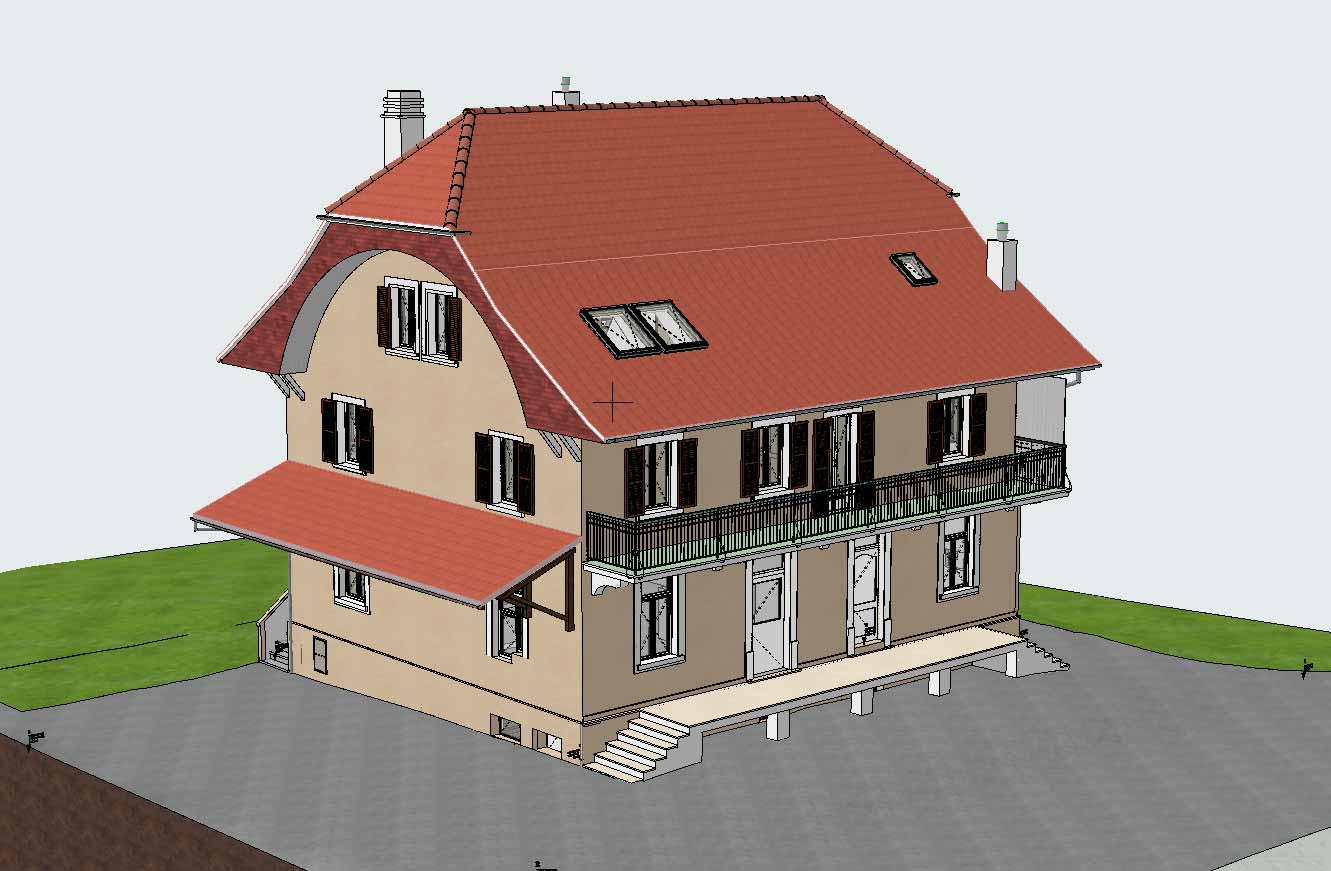Swiss-scan est intervenu pour réaliser un relevé laser scanner haute précision du bâtiment, complété par un géoréférencement GNSS afin d’assurer une parfaite intégration dans le contexte cadastral et topographique.